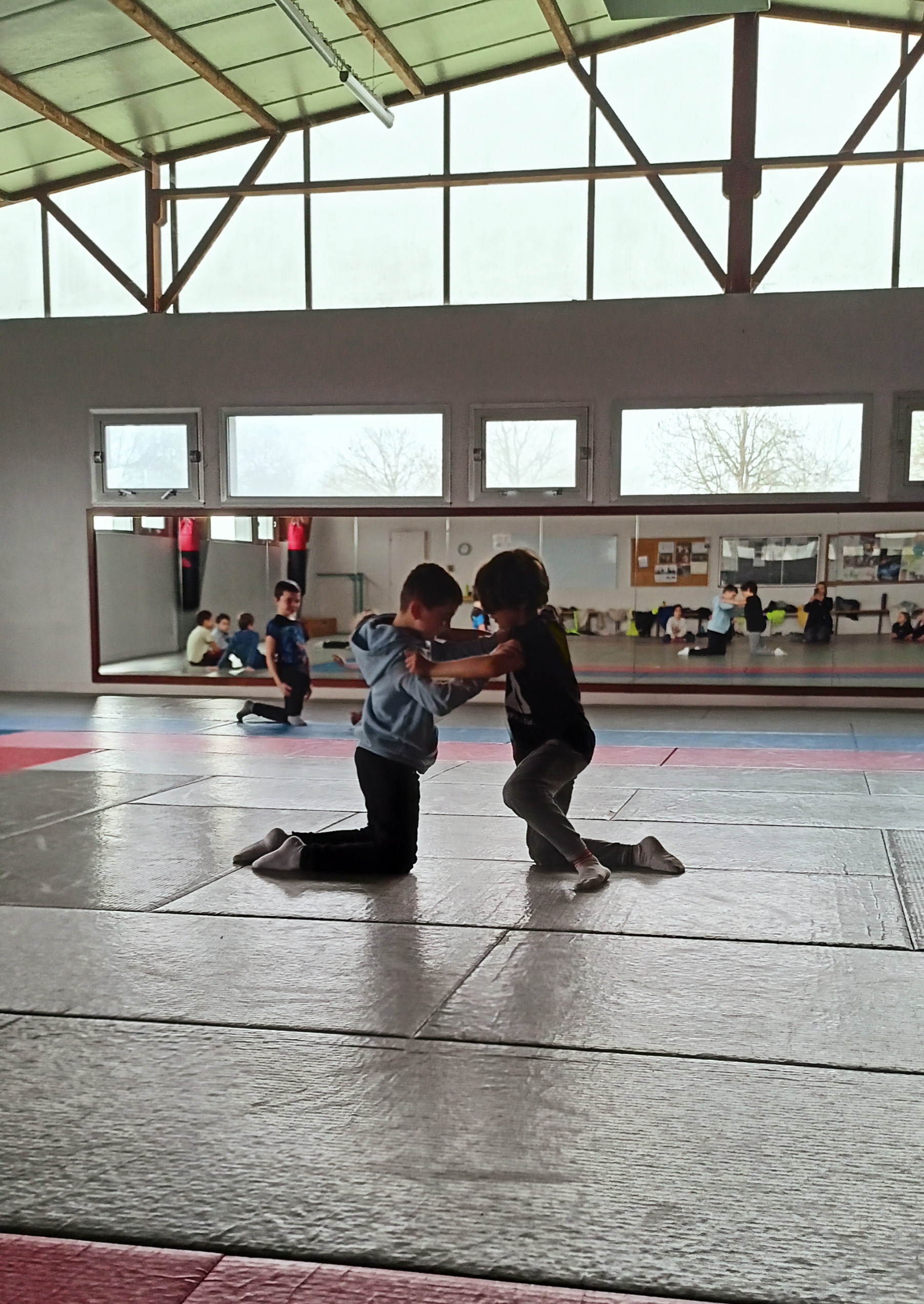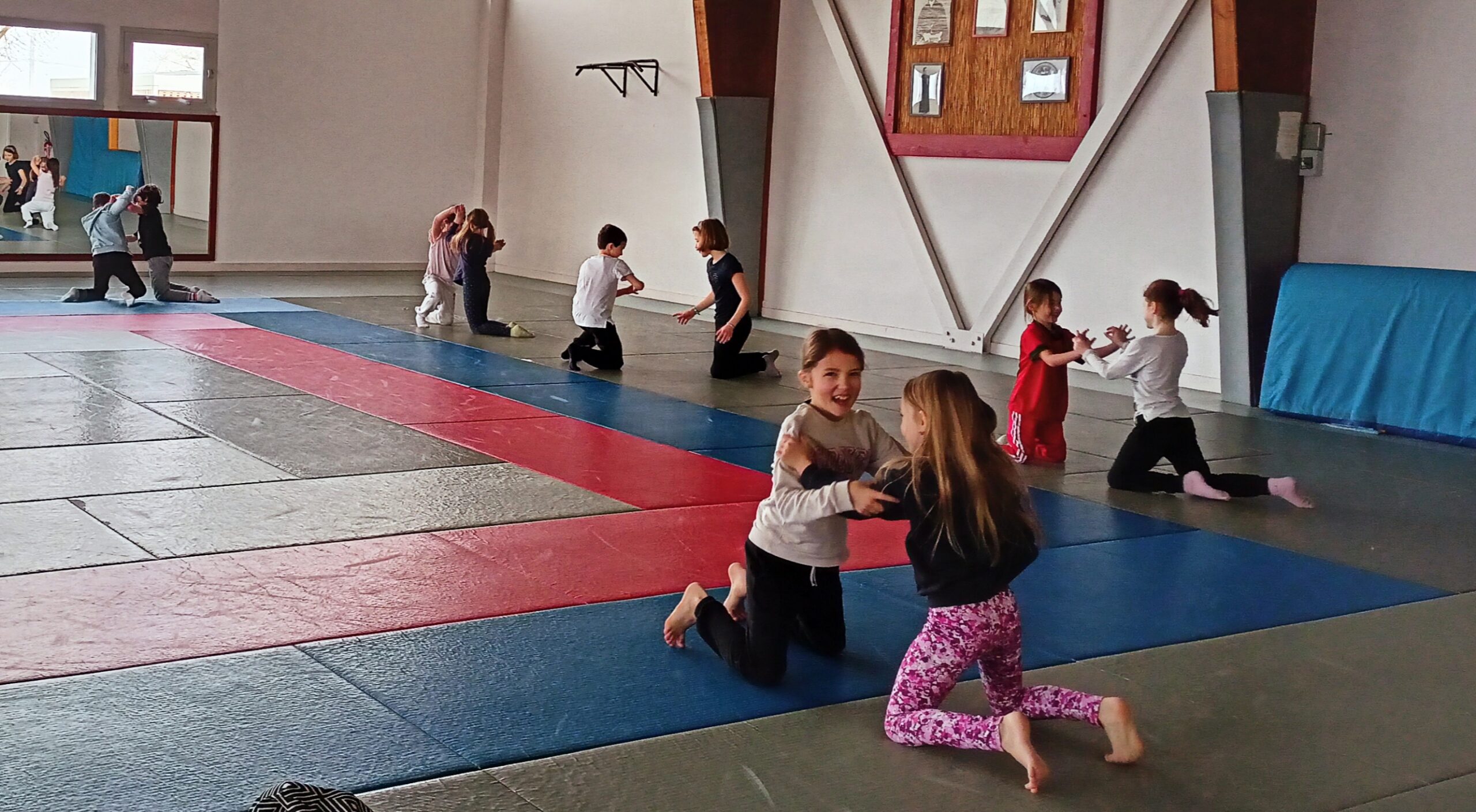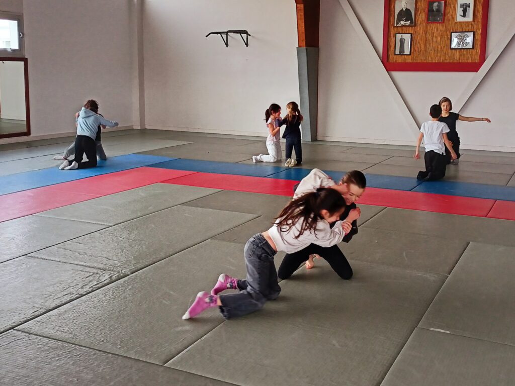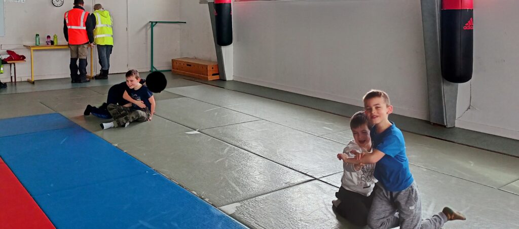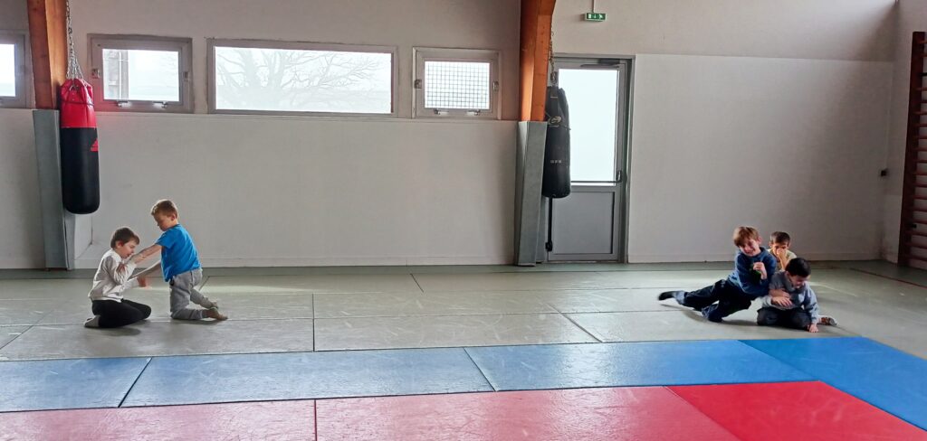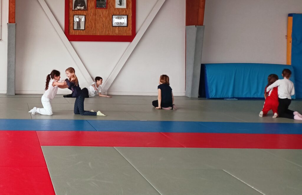 Tous les mardis depuis le mois de février, nous nous rendons au dojo à Blain. Nous travaillons différents jeux d’opposition.